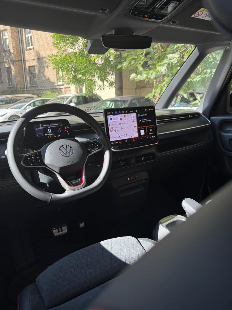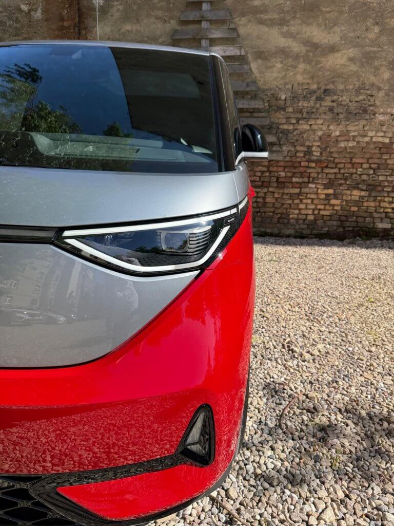 ID. Buzz GTX ir pilnpiedziņas versija ar 250 kW jaudu, kas spēj pārsteigt. Tas startē ar entuziasmu, un uz ceļa nejūtas smagnējs – pat ja aerodinamikas koeficients atgādina ledusskapi.